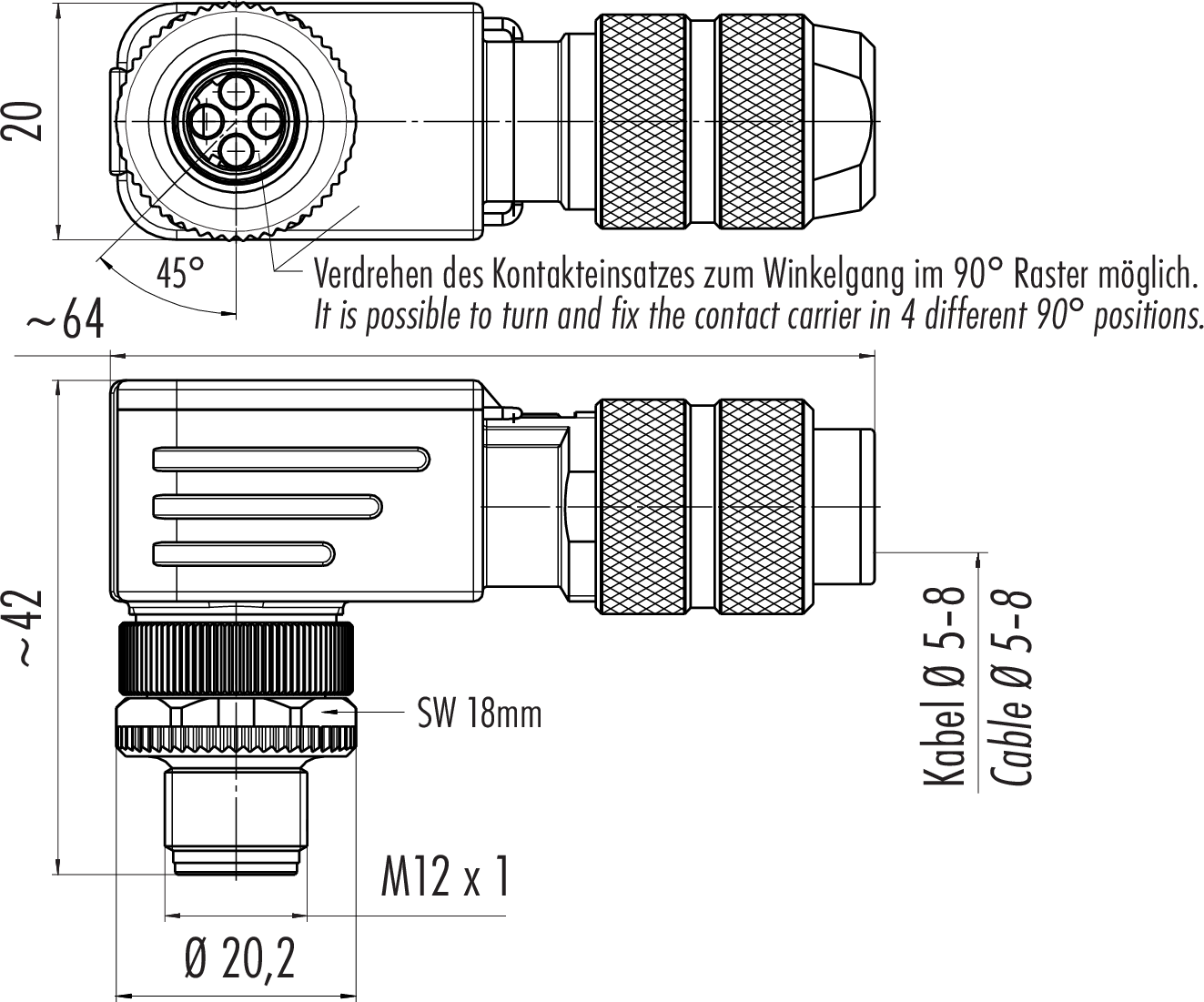 Polzahl: 4, 5,0 – 8,0 mm, schirmbar, crimpen (Crimpkontakte müssen separat bestellt werden), IP67, UL