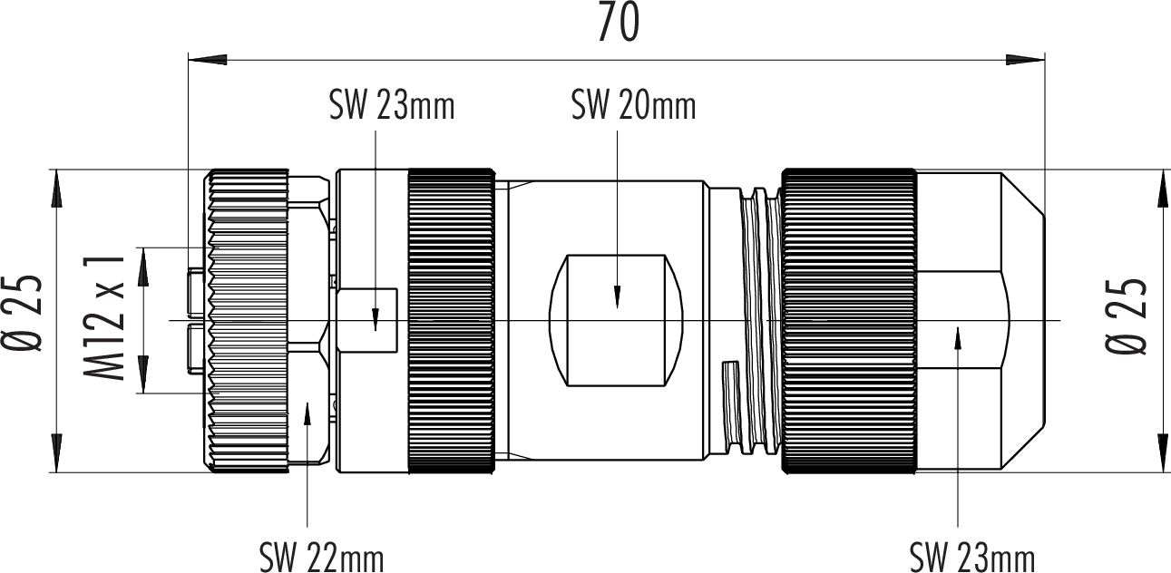 Polzahl: 4+FE, 8,0 -13,0 mm, nicht geschirmt, schraubklemm, IP67, M12x1