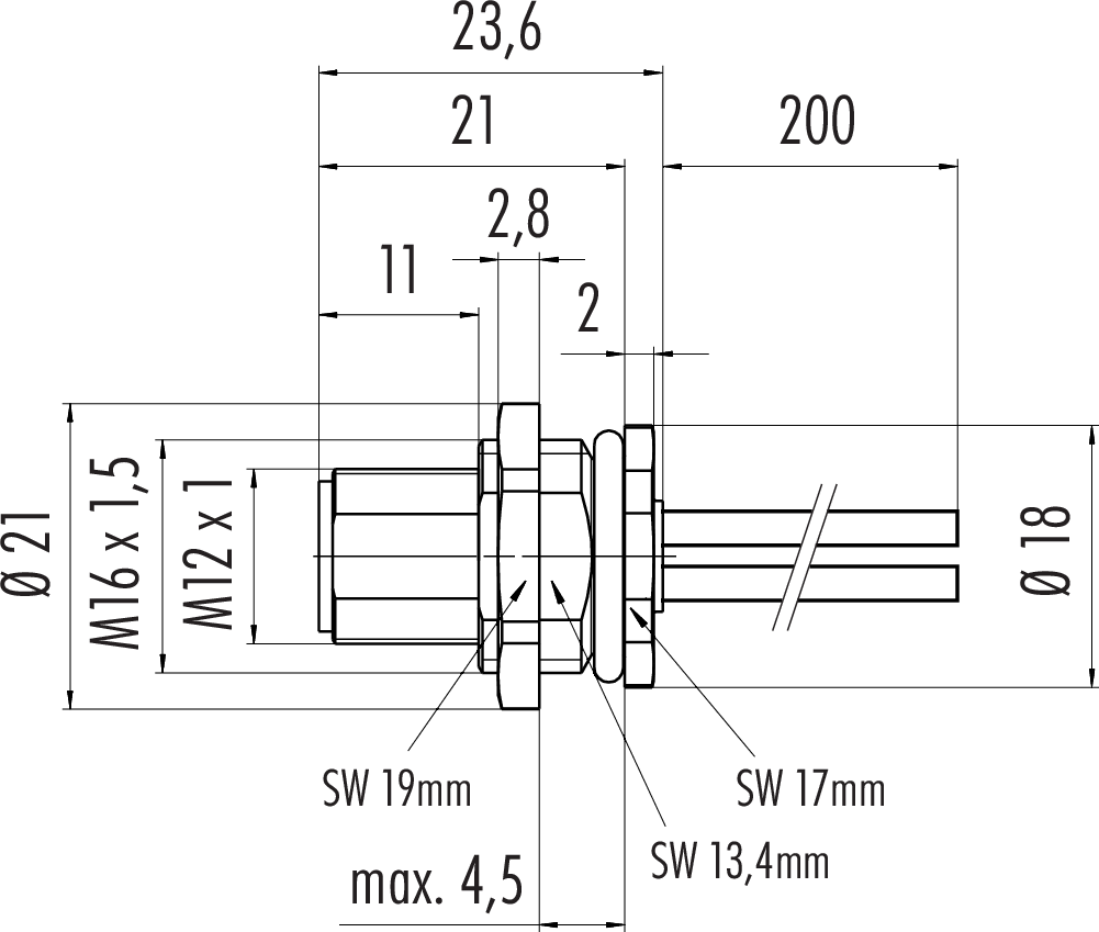 Polzahl: 3+PE, Litzen, IP68, UL, M16x1,5