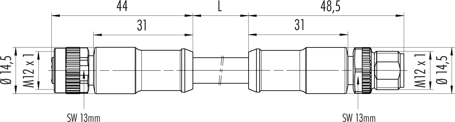 Polzahl: 4, nicht geschirmt, IP68, M12x1, PUR Kabel schwarz, 4 x 1,5 mm²