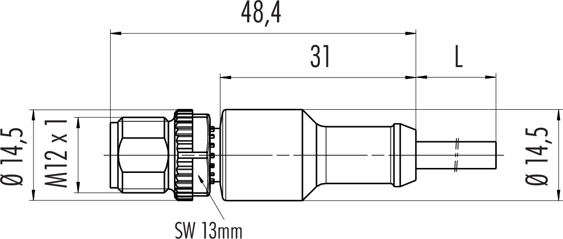 Polzahl: 3, nicht geschirmt, crimpen, am Kabel angespritzt, IP68, UL listed, 3 x 0,34 mm²
