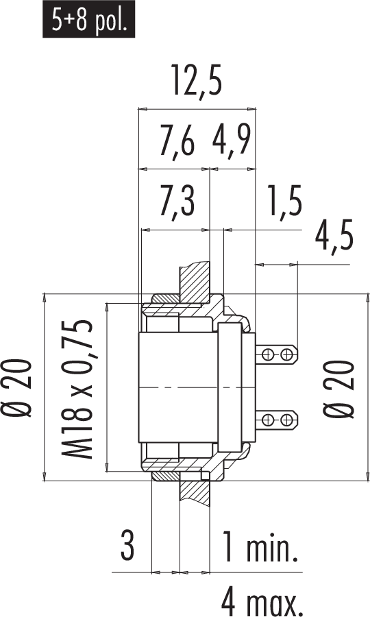 Polzahl: 2, nicht schirmbar, löten, IP40