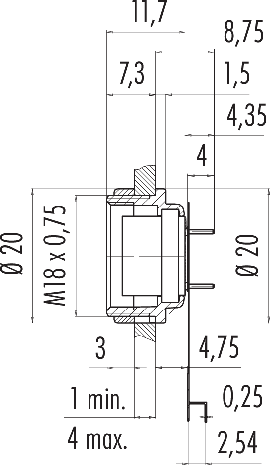 Polzahl: 6 DIN, nicht schirmbar, tauchlöten, IP40