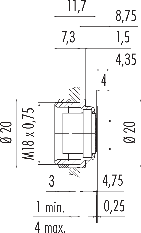 Polzahl: 7, nicht schirmbar, löten, IP40