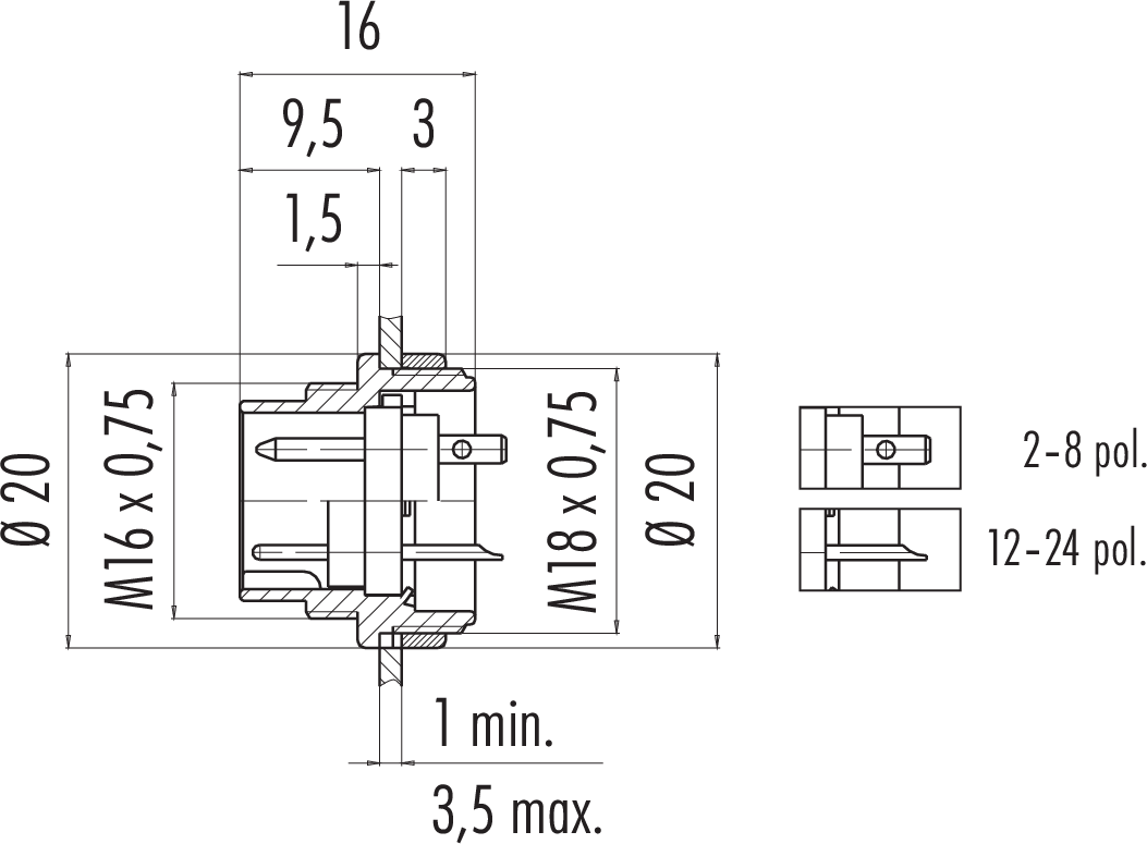 Polzahl: 6 DIN, nicht schirmbar, löten, IP40