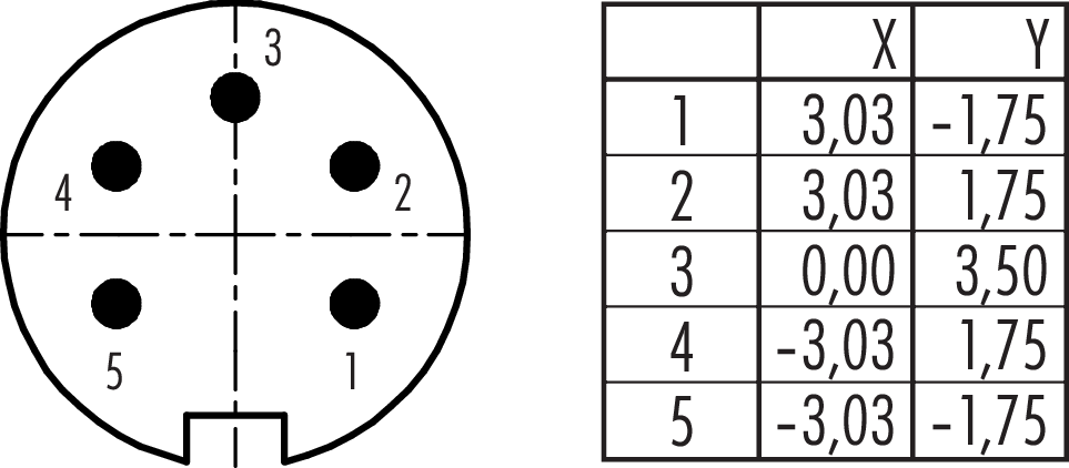 Polzahl: 5, 4,0 – 6,0 mm, nicht schirmbar, löten, IP40
