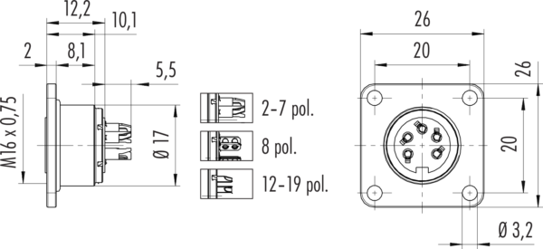 Polzahl: 16, nicht schirmbar, löten, IP67, UL