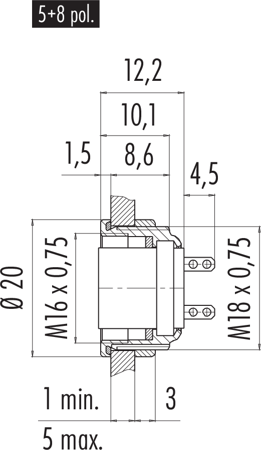 Polzahl: 2, nicht schirmbar, löten, IP67, UL