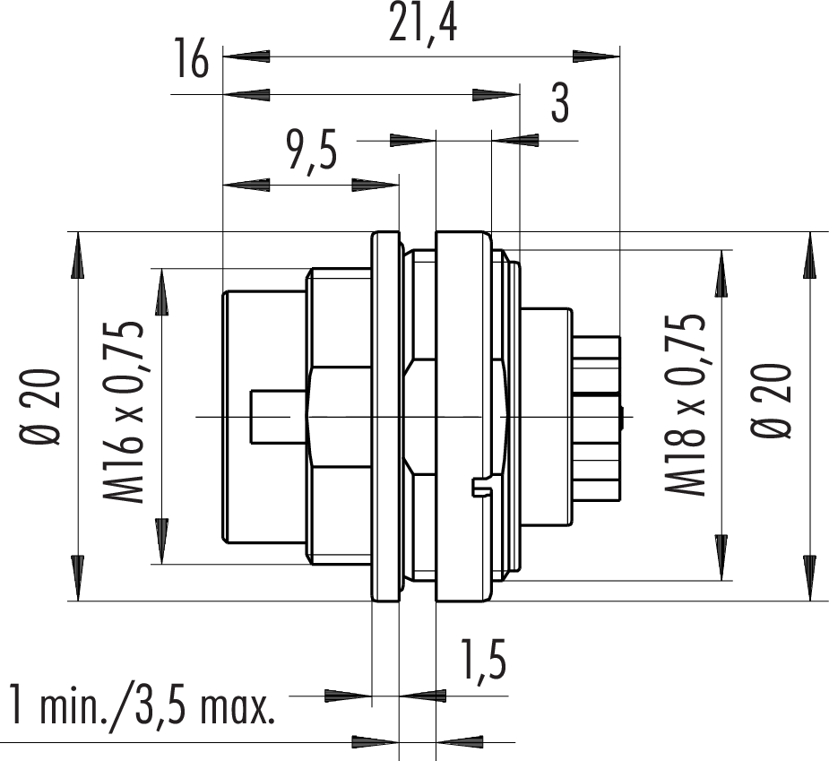 M16 IP67 Flanschstecker
