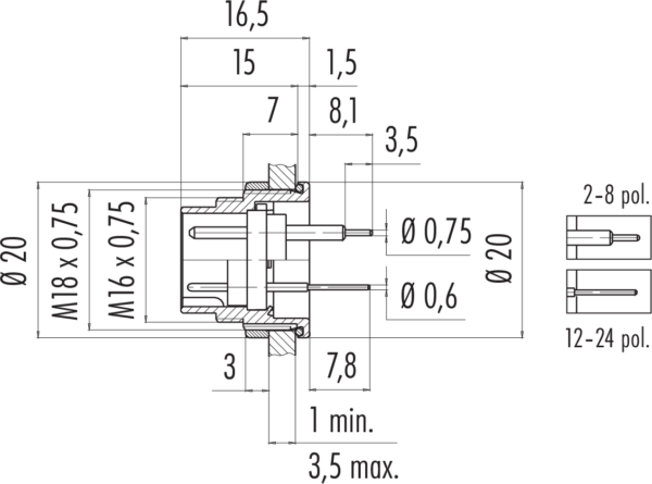 Polzahl: 5, nicht schirmbar, tauchlöten, IP67, UL