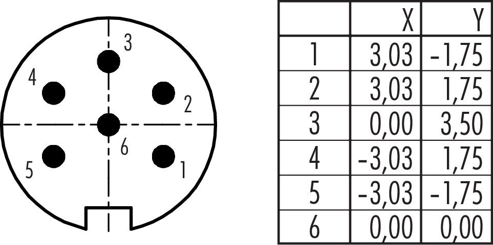 Polzahl: 6 DIN, 4,0 – 8,0 mm, nicht schirmbar, crimpen (Crimpkontakte müssen separat bestellt werden), IP67, UL