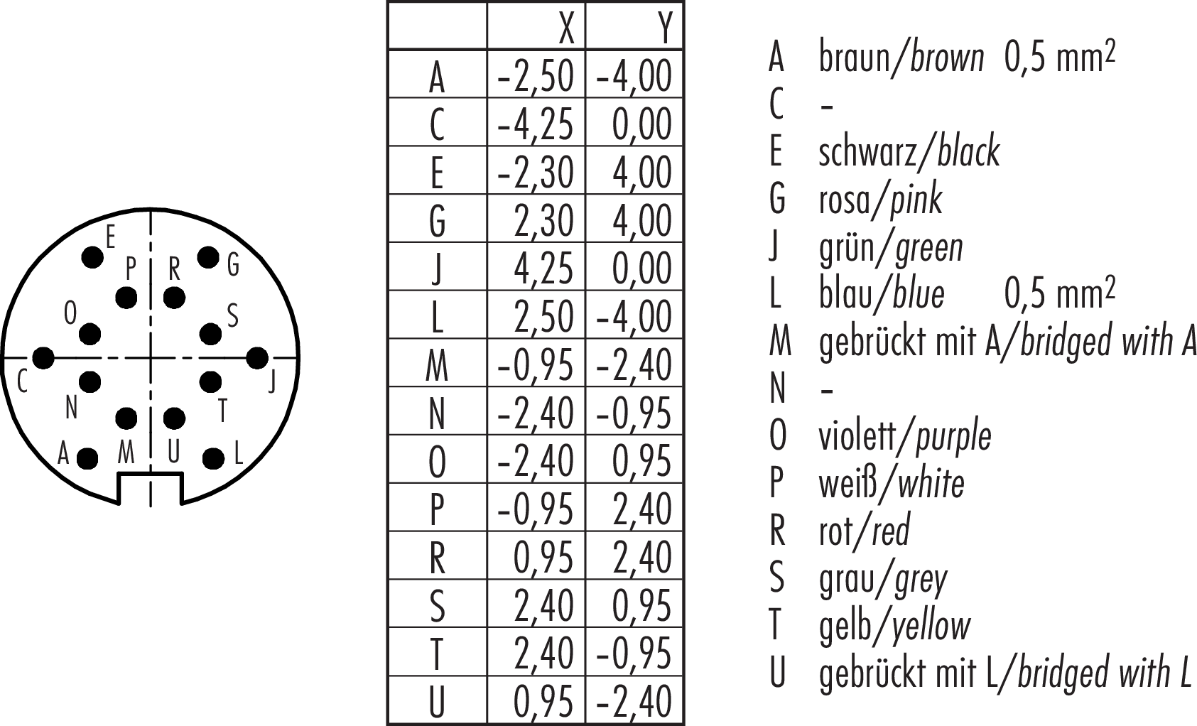 Polzahl: 14, nicht geschirmt, am Kabel angespritzt, IP67, Standard Kabel, 8×0,25, 2×0,5 mm²