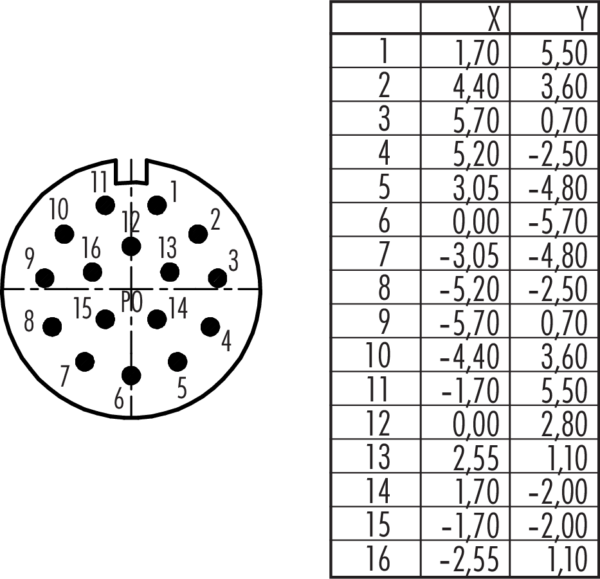 Polzahl: 16, nicht schirmbar, löten, IP67