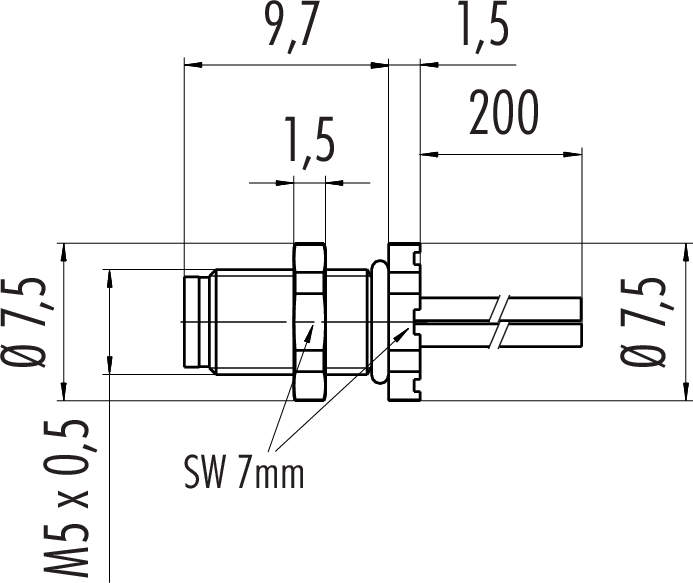 Polzahl: 4, nicht geschirmt, mit Litzen konfektioniert, IP67