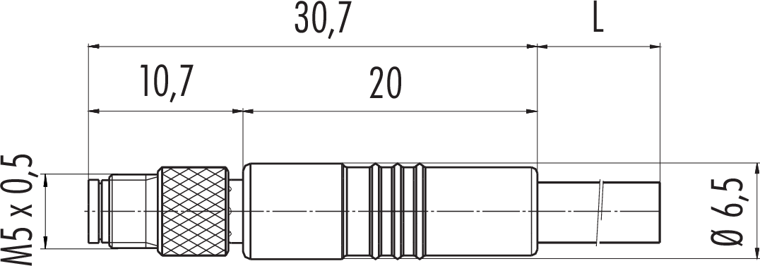 Polzahl: 4, nicht geschirmt, crimpen, am Kabel angespritzt, IP67, M5x0,5, 4 x 0,25 mm²