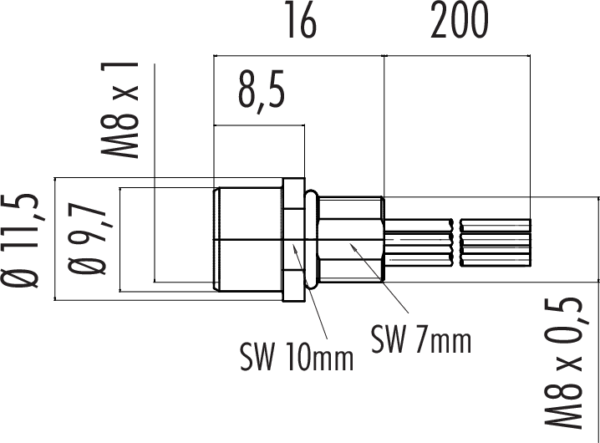Polzahl: 4, nicht geschirmt, Litzen, IP67, UL