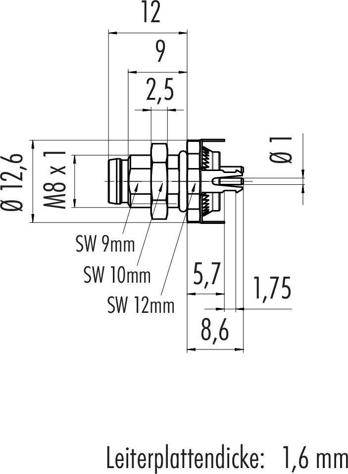 Polzahl: 6, schirmbar, tauchlöten, IP67