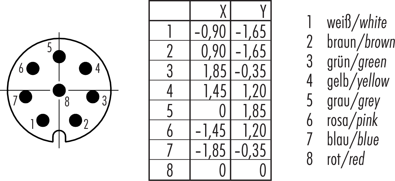 Polzahl: 8, schirmbar, tauchlöten, IP67