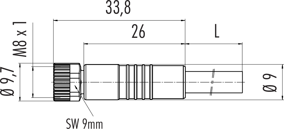 Polzahl: 8, nicht geschirmt, crimpen, am Kabel angespritzt, IP67, UL listed, 8 x 0,25 mm²