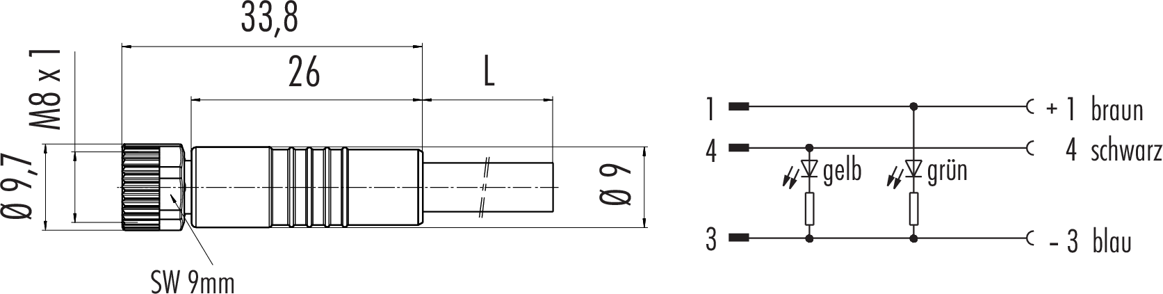 | Anschlussart | crimpen, am Kabel angespritzt |