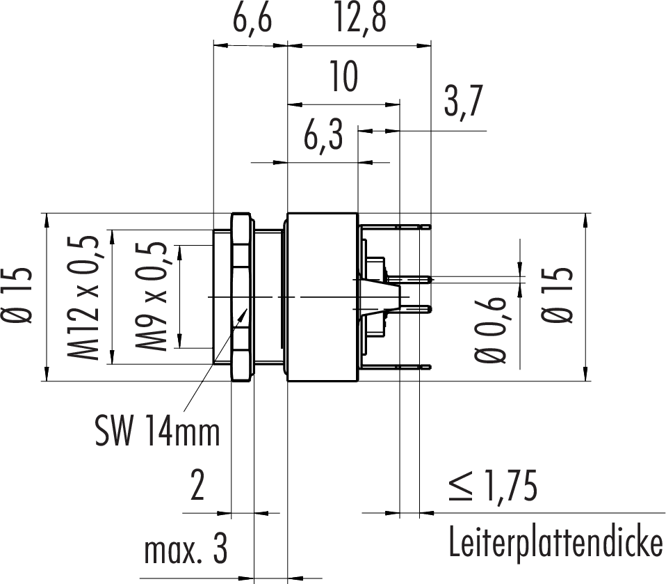 Polzahl: 3, schirmbar, tauchlöten, IP67
