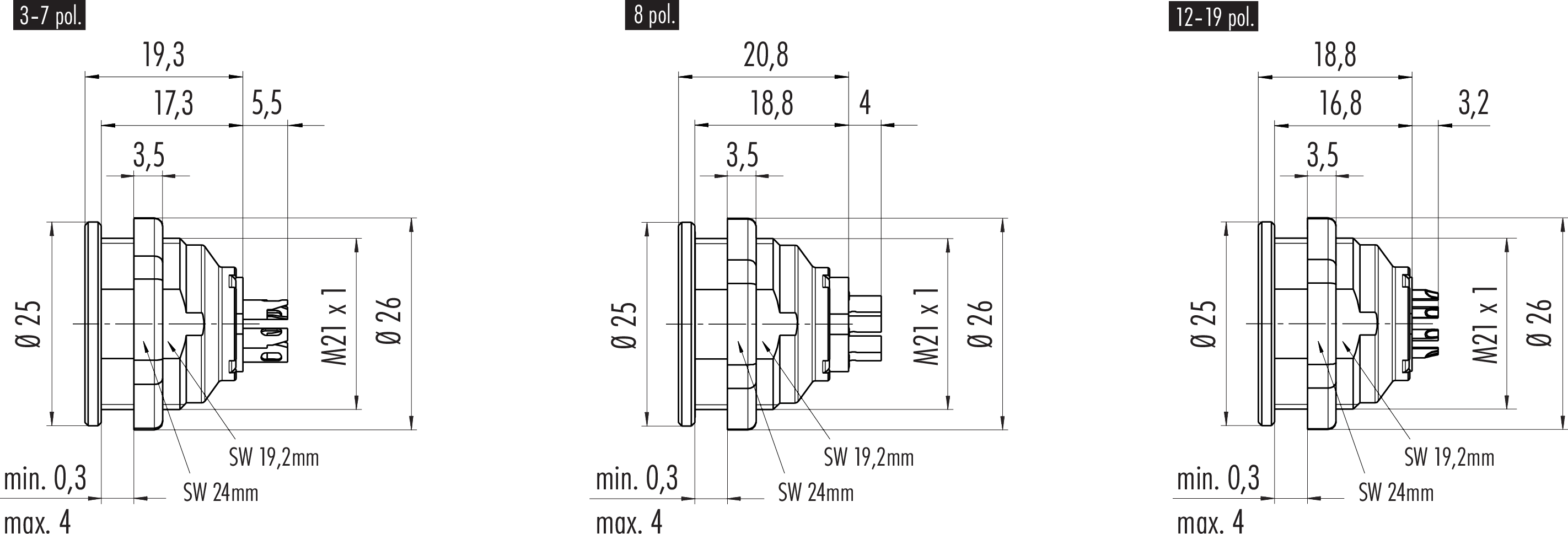 Polzahl: 7, nicht schirmbar, löten, IP67