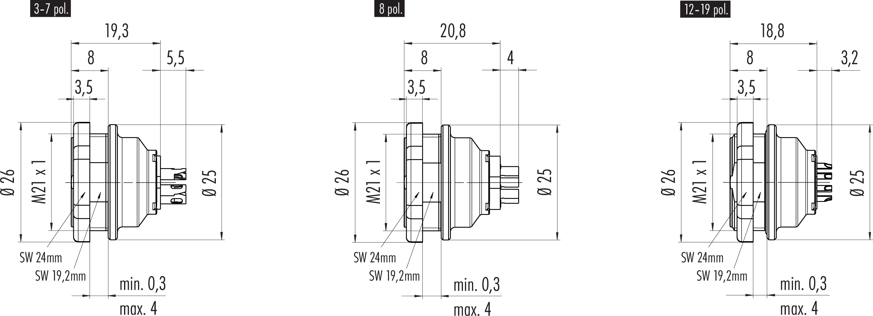 Polzahl: 3 DIN, nicht schirmbar, löten, IP67