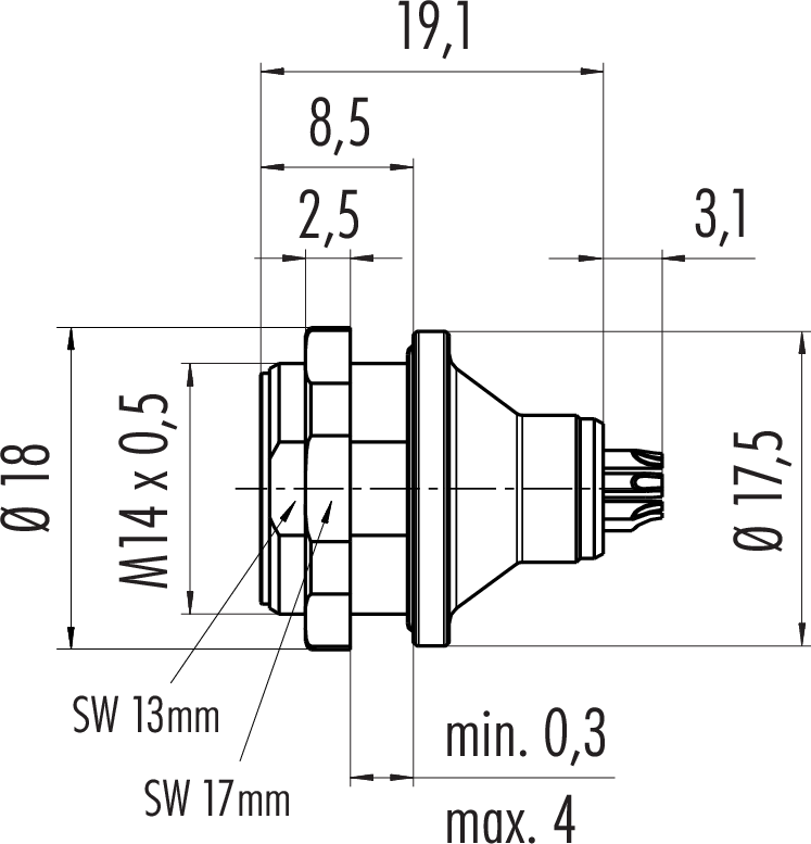 Polzahl: 4, nicht schirmbar, löten, IP67