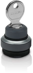 RAFIX 22 FS+, Schlüsselschalter kompakt, Bund rund, Frontring silbergrau, 1 x 90°, Form L, rastend, Abzugsstellung 0