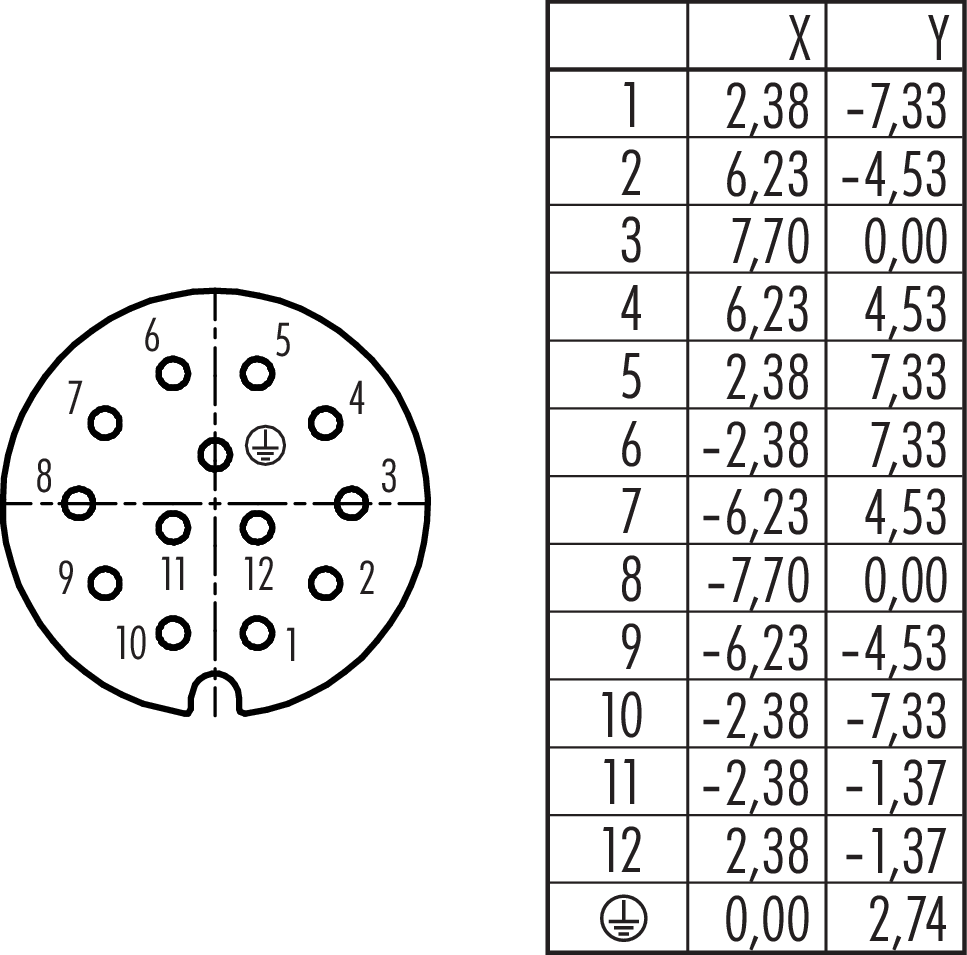 Polzahl: 12+PE, 12,0 – 14,0 mm, nicht schirmbar, löten, IP65