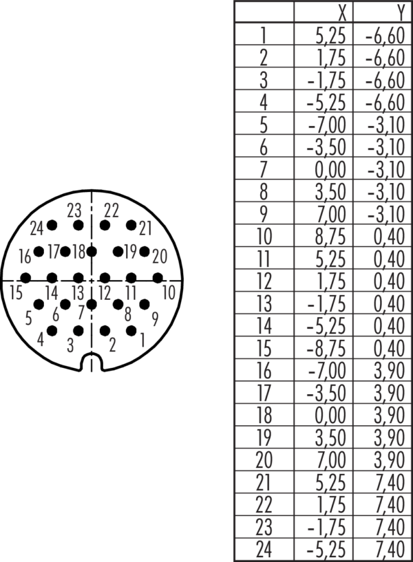 Polzahl: 24, 14,0 – 18,0 mm, nicht schirmbar, löten, IP65