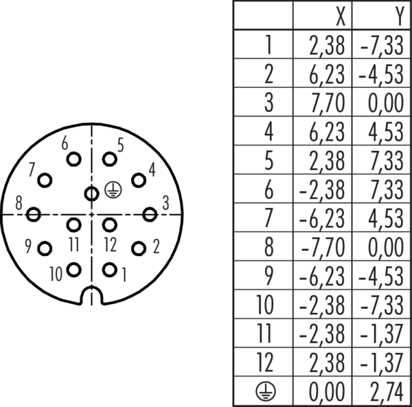 Polzahl: 12+PE, 10,0 – 12,0 mm, nicht schirmbar, löten, IP65