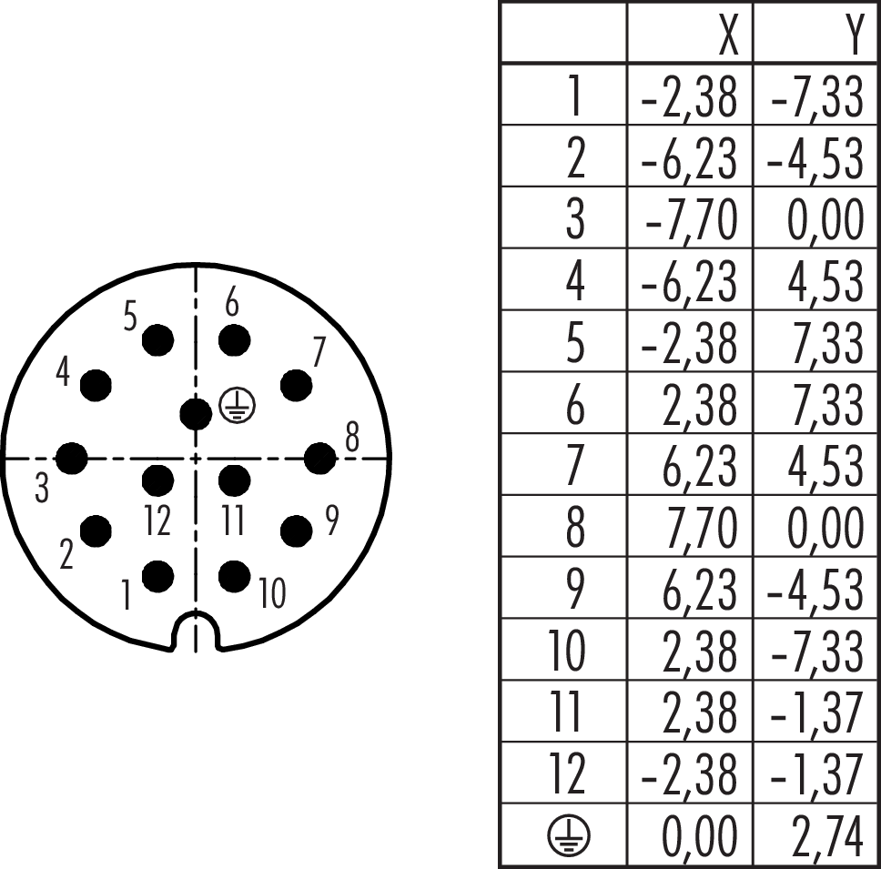 Polzahl: 12+PE, 10,0 – 12,0 mm, nicht schirmbar, löten, IP65