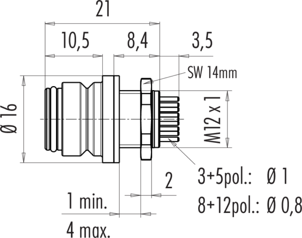 Polzahl: 8, nicht schirmbar, tauchlöten, IP67, VDE